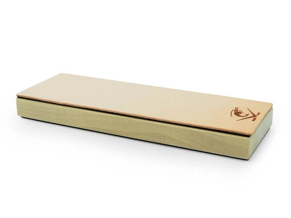 Den letzten, optimalen Schliff geben Sie Ihrem Messer mit diesem Abziehleder von Naninwa aus Japan. Es besteht aus einem Holzblock aus Magnolienholz und natürlichem Kalbsleder. Die Abmessungen sind ca. 210 x 70 mm. Auf der Rückseite ist eine rutschfeste Matte sicher verklebt. Um das Abziehen des Messers zu erleichtern, kann eine feine Polierpaste verwendet werden. Sie werden vom Ergebnis begeistert sein.