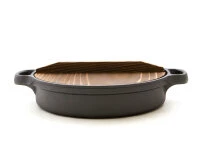 Die Grillpfanne Oval, natürlich aus gesundem Gusseisen, ist ein besonders vielseitiges Exemplar aus dem Haus Kamasada (Manufaktur). Handgefertig in Japan, Präfektur Iwate, designed von Nobuho Miya. Die Bratfläche ist zweigeteilt, so dass mehrere Zutaten miteinander gegart oder gebraten werden können. Selbstverständlich ist auch diese wunderschöne Pfanne aus bestem Eisenerz in traditioneller Art gefertigt (