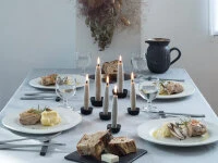 Die Inspiration für die bauchige Form der Tohaku-Kerzen kommt von einer robusten Kiefer. Gleichzeitig ist es eine Hommage an das Gemälde „The Pine Trees“ einem der berühmtesten Maler Japans namens Tohaku Hasegawa. Die Kiefern auf seinem Gemälde stammen aus der Landschaft von Nanao City und sind aus der Erinnerung an die schöne Natur aus seiner Kindheit entstanden. Die Flamme der Kerze ist die Verlängerung der sanften Linien dieser Bäume und erinnert an eine rustikale Einfachheit.