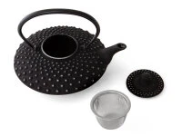 Die wahrscheinlich bekannteste Form der japanischen Gusseisen Teekanne gibt es jetzt auch mit einem Volumen von 0,75 Liter. Die elegante, flache Teekanne Hira Arare von Iwachu ist ein echter Klassiker und eine der beliebtesten Teekannen überhaupt. Form und Farbe lässt sich vielseitig mit Ton- und Porzellan-Teeschalen kombinieren. Auf dem Tisch ist die Hira Arare ein absoluter Augenschmaus.