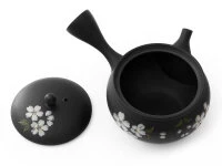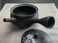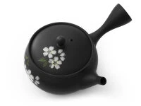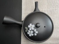 Sakura begeistert Kenner mit ihrer Schönheit und der Geschmacksverbesserung für Grünen Tee, die diesen Kannen eigen ist. Wie alle Produkte von Gyokko wurde auch diese Teekanne von Hand auf der Töpferscheibe gefertigt. Auch das Keramiksieb ist handgefertigt. Gyokko ist einer der bekanntesten Meister dieser Kunst und verwendet ausschließlich natürlichen, mineralstoffreichen Ton aus Tokoname, der bei hohen Temperaturen gebrannt werden kann. Seine feinen Muster sind oft Vorlage für Kopierversuche, was in Japan als großes Kompliment gilt. Die schöne Teekanne wiegt ca. 260 Gramm und fasst ungefähr 350 ml. Sie ist sehr gut mit den schwarzen Teeschalen von Meister Gyokko kombinierbar.