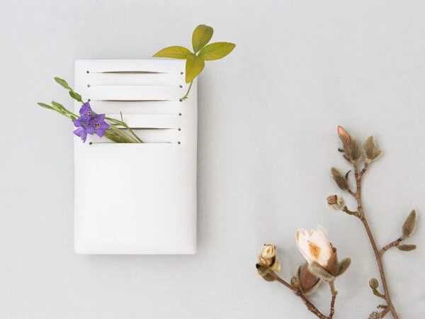 Act/ slit können Sie nach Lust und Laune mit frischen oder trockenen Blumen und Zweigen dekorieren. Die Vasen Act/ werden am besten mit einer kleinen Schraube (nicht im Lieferumfang) an der Wand befestigt.