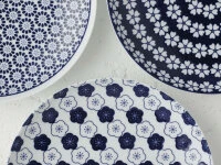 Sehr schöner, großer japanischer Teller, Ø 24 cm, mit dem Symbol Motiv Koume, ein traditionelles japanisches Motiv. Der aus hochwertigem, japanischem Porzellan hergestellte Teller lädt zur kreativen Kombination mit anderen Motiven aus der Tafelgeschirr Serie Komon Arita ein. Diese Teller werden in Arita, der weltbekannten japanischen Hochburg für Porzellan und edlem Design von der Manufaktur Kihara hergestellt. Kihara setzt dabei traditionelle Herstellungsverfahren in Kombination mit modernen Techniken ein, um ein optimales Produkt herzustellen. Gestalten Sie eine abwechslungsreiche und doch harmonisch ruhige, kreative Tafel, Ihren Gästen und sich zum Vergnügen.