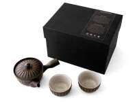 Japanisches Teeservice Teppachu Kurokusube, 3-teilig, Banko Yaki