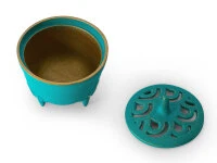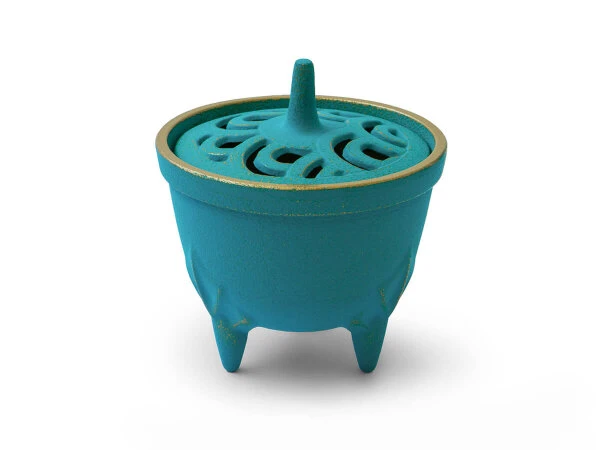 Japanisches Räuchergefäß Sakura, Gusseisen Türkis