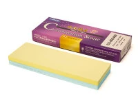 Die Naniwa Kombi Schleifsteine mit jeweils zwei Körnungen sind ein preiswerter und doch qualitativ hochwertiger Einstieg. Sie bestehen aus Schärfsteinen der Serie Super Stone. Die Serie Naniwa Super Stone sind als Wasserschleifsteine bekannt, die besonders strapazierfähig, schnell einsetzbar und sehr effizient sind. Ein kurzes Eintauchen in Wasser genügt und der Schleifstein kann verwendet werden. Die Schleifzeit ist gering, da die Steine eine hohe Konzentration von abrasivem Material haben. Besonders für feine, empfindliche Schneiden aus hartem Kohlenstoffstahl sind diese Schärfsteine sehr empfehlenswert. Das Schleifgefühl ist sehr sanft, die Abnutzung der Steine äußerst gering, mit Papier können die Oberflächen leicht gereinigt und wieder geöffnet werden. Super Stone werden diese Wasserschleifsteine auch deswegen genannt, weil man mit ihnen eine unschlagbar schön polierte Kante erzielen kann. Gleichzeitig bieten die Schleifsteine dieser Serie ein sehr gutes Preis-Leistung-Verhältnis. Gerade wenn der Messerliebhaber es vorzieht mit relativ geringen Übergängen in der Körnung zu arbeiten, kann es sinnvoll sein, mit Kombi Schleifsteinen zu arbeiten. So kann man zum Beispiel sehr günstig ein breites Spektrum von Körnungen abdecken, wenn man die Kombination 400/1000, 3000/5000 und 8000/12000 wählt.