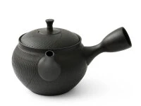Kuro Fukuro Biri fast 360 ml, was für eine japanische Teekanne recht viel ist. Für viele entscheidender sind aber die schöne Form und das unauffällige, elegante Muster dieser Teekanne. Natürlich ist sie mit einem keramischen Sieb ausgestattet und wird in einer schönen blauen Karton-Box geliefert.
