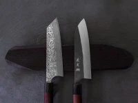 Das Holz der Messerleiste aus Nussbaum ist von Hand geölt, die Messerleisten aus Esche sind schwarz mit einer Beize auf Wasserbasis gebeizt. Möglichst nur trocken reinigen. Die Beize kann abfärben.