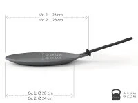 Alle Produkte sind Unikate. Leichte Abweichungen von der Abbildung sind möglich. Kleine Unregelmäßigkeiten in der Form und Oberfläche sind Zeichen der handwerklichen Herstellung. Verwendung auf allen Herdarten: Elektroherd, Induktionsherd, Gasherd. Offenes Feuer, Grill, Backofen. Einfaches Vorbereiten (Einbrennen) und Reinigen von Hand. Bitte die beigelegten Pflegehinweise beachten.
