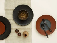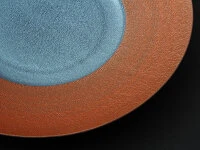 Porzellan Teller von Koubei-Gama, der Keramik Manufaktur aus Gifu. Die Teller sind in traditioneller Weise von Hand gefertigt, bemalt und wurden in einem nach historischen Vorgaben 1977 erbauten Ofen gebrannt. Die Oberfläche ist leicht aufgeraut, was den Tellern eine ungewöhnlich schöne Ästhetik im Detail verleiht. Für hartes Essbesteck ist diese Porzellanware zu schade, man sollte Essstäbchen oder Holzbesteck verwenden. Ein besonderer Reiz der Serie Homura besteht in den Kombinationsmöglichkeiten mit den anderen einfarbigen und zweifarbigen Tellern der Serie. Diesen Teller gibt es mit den Durchmessern 20, 24 und 28 cm.